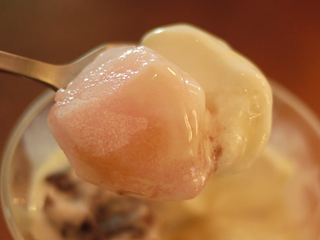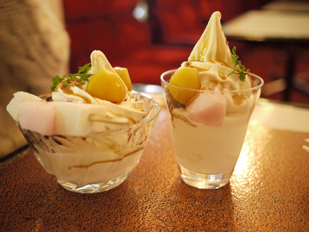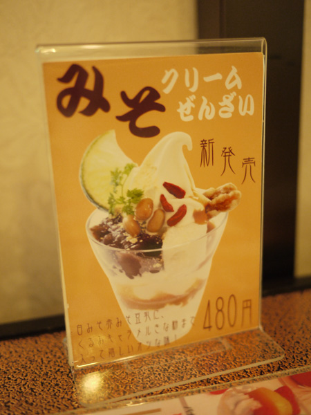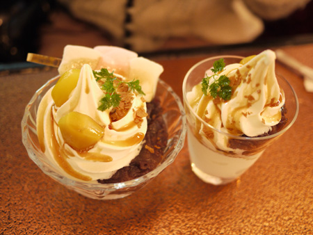 しょうゆクリームぜんざい。左がMで右がSサイズ。