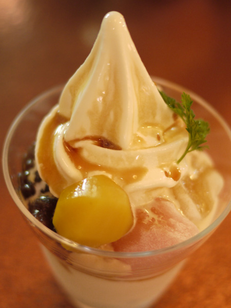 ソフトクリームの量が違うだけでなく、Mは栗2個求肥3個、Sは栗1個求肥2個でした。